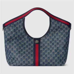 Description Unveiled during the Cruise 2026 fashion show in Florence, Gucci Giglio is a tribute to the House’s Italian roots, and the spirit of continuity and reinvention. Crafted in GG denim, this capacious tote features the Web trim, and is complete with a detachable pouch. Online exclusive Blue and white GG denim Blue and red...
