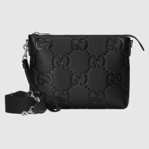 Description The all-black jumbo GG design returns for Pre-Fall 2023 on a selection of leather pieces. A reinterpretation of Guccio Gucci’s initials, the motif is an evergreen of the House that appears prominently in maxi size for an eye-catching logo feel. The signature motif decorates this messenger bag. Black jumbo GG leather Cotton linen lining...