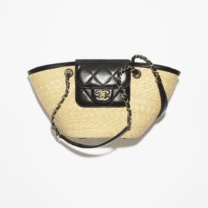 Description Materials Straw, lambskin, and gold-tone metal Color Beige and Black Dimensions 18 x 41 x 13 cm Item Number AS5951-B22647-U6027