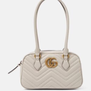 Description The GG Marmont, a signature collection of the House, features the emblematic Double G and a faceted chain strap on softly structured designs. This new shoulder bag is crafted from soft lightweight matelassé chevron leather, complete with tonal enamelled hardware. Ivory soft lightweight matelassé chevron leather Tonal enamelled hardware and chain White viscose lining...