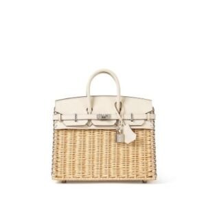Description Hermès Limited Edition Nata Swift and Osier Wicker Picnic Birkin 25 Palladium Hardware, 2022 Original leather and bamboo weaving The interior is lined with tonal swift leather Includes clochette, lock, 2 keys, felt, dustbag Dimensions 25 x 19 x 24 cm 13414839027475579
