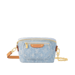 Description This summery edition of the Mini Bumbag comes in vintage-look denim, which is woven with the Monogram pattern, then bleached and stonewashed. This on-trend model has a zipped main compartment and a zipped front pocket, which is signed with a Louis Vuitton-embossed leather label. Its removable chain and removable, adjustable strap offer different carry...