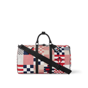 Description Part of the America’s Cup collection, this eye-catching Keepall Bandoulière 50 bag is made from Damier Flags canvas. The Damier Flags print evokes the tradition of flag signaling in the maritime world. Imagined as a patchwork of different flags, the Damier pattern is created through a checkered print, playing with scale and color. 19.7...