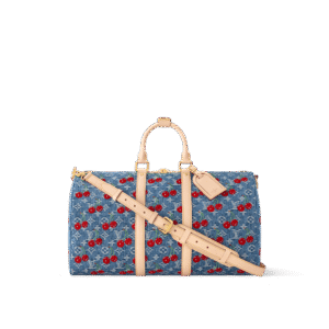 Description The Keepall Bandoulière 45 makes a bold statement as part of the re-edition of the coveted Louis Vuitton x Takashi Murakami collection. It is revisited in sophisticated Monogram denim with vibrant cherry motifs embroidered over the top in the Japanese artist’s vernacular playful style. The emblematic lateral bands, top handles and adjustable strap strike...