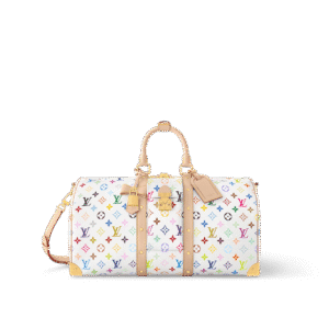 Description The emblematic Keepall Bandoulière 45 makes a vibrant statement in multicolored Monogram coated canvas from the re-edition of the Louis Vuitton x Murakami collection, which revisits the House’s classic signature with the Japanese artist’s playful rainbow palette. A front pocket with an S-lock closure and gleaming metallic corners add an emblematic touch, while studded...