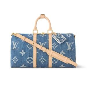 DescriptionThe classic Keepall Bandoulière gets a sporty-chic new look with the Monogram Denim theme. The House’s famous Monogram pattern is printed on certified organic canvas the color of blue jeans, creating an eye-catching contrast with the natural cowhide trim. Complete with a padlock and a removable strap, this spacious bag is ideal as a carry-on...