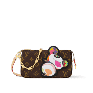 Description The House’s classic Pochette Accessoires makes a vibrant statement as part of the re-edition of the Louis Vuitton x Murakami collection. Crafted from timeless Monogram coated canvas, the silhouette of the pouch is reworked with the artist’s playful Panda character in vibrant pop colors. The natural cowhide leather strap and chic golden chain are...