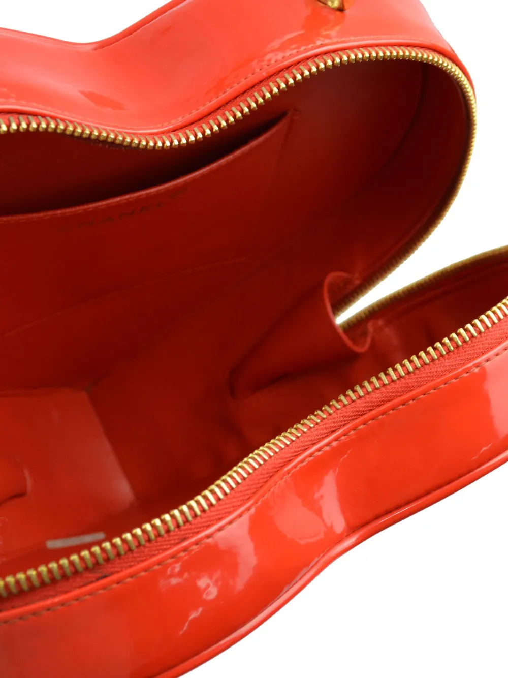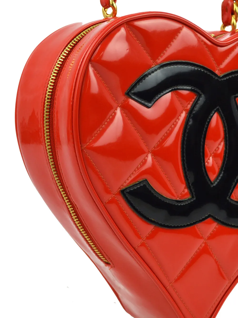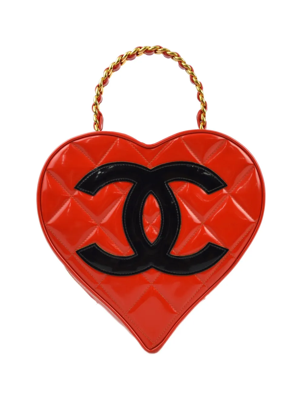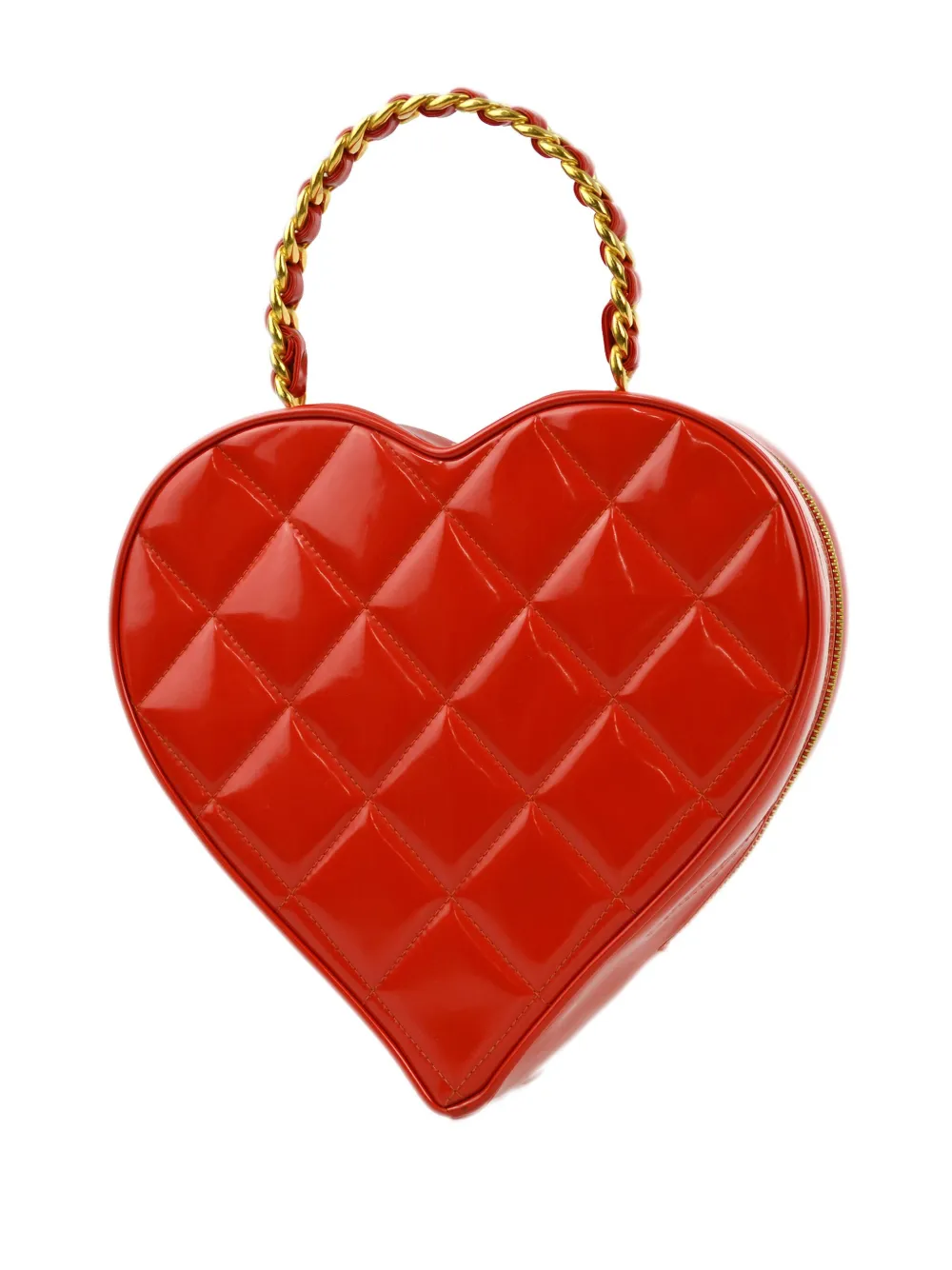 Description circa 1995 red leather patent finish diamond quilting leather and chain-link top handle all-around zip fastening main compartment internal slip pocket gold-tone hardware DEPTH 7 cm/2.75in HANDLE 10 cm/3.93in HEIGHT 20 cm/7.87in WIDTH 22 cm/8.66in 22x20x7cm