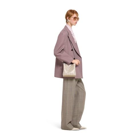 Description The GG Emblem collection reinterprets the House’s history of elegance and craftsmanship, introducing metallic styles which impart new light on the signature GG motif, complete with metallic leather trim. Light beige and metallic silver laminated-effect GG Monogram coated fabric Metallic silver leather trim Silver-toned hardware Light grey cotton linen lining Additional D-ring for detachable items Inside: 2 compartments and a snap button central compartment Top handle with hook closure; drop: 5.5″ Detachable and adjustable leather shoulder strap with 20.4″ – 22.6″ drop; length: 42.1″- 44.8″ Magnetic snap closure 7.5″W x 7.1″H x 4.3″D Weight: 1lbs, approximately Made in Italy The bag charm shown is sold separately and not included with the handbag. Fits iPhone Pro Max/Plus, Airpods, card case, and lipstick