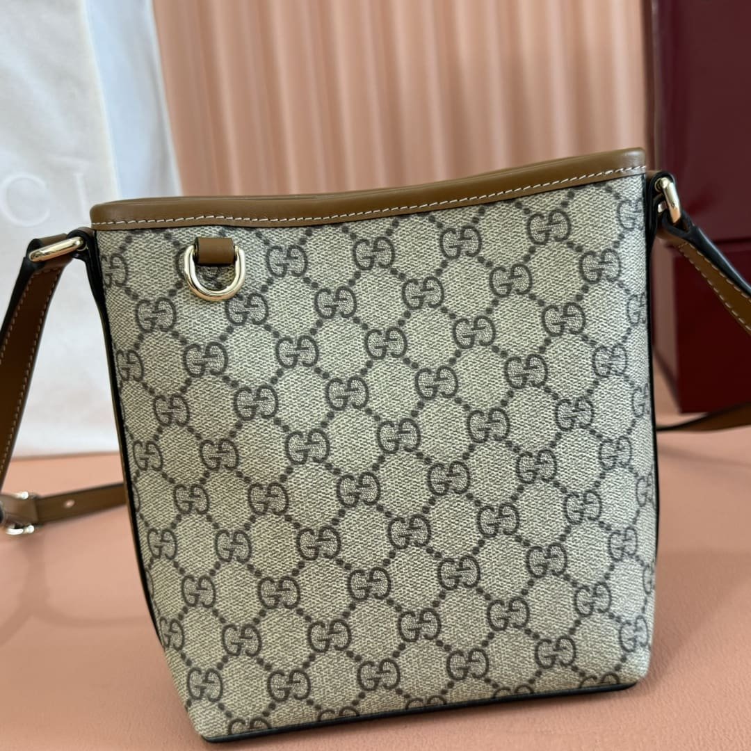 Description In the Fall Winter 2025 collection, part of the new GG Emblem collection, this mini bucket bag reinterprets House codes through a functional lens. Characterized by a compact silhouette and refined details, it features a long shoulder strap for comfortable wear, making it a versatile option from day to evening. Product Details Beige and dark brown new GG Monogram coated fabric Brown leather trim Light gold-toned hardware Green and red Web cotton lining The bag charm shown is sold separately and not included with the handbag. Adjustable leather shoulder strap drop: 52 – 58cm W15 (18)cm x H18cm x D8cm Weight: approximately 0.211kg Made in Italy Fits iPhone Pro Max/Plus, Airpods, mini wallet, and lipstick