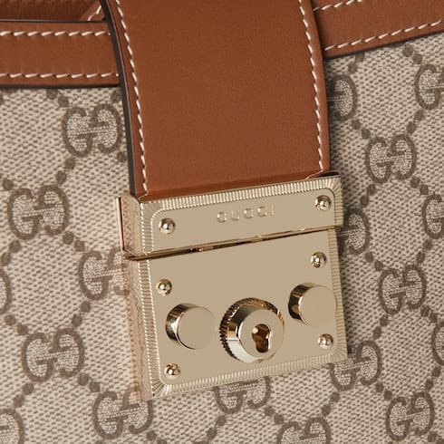 Description In the Pre-Fall 2025 collection, the Padlock introduces contemporary silhouettes that offer many wearabilities. The top handle bag reveals a Web lining which recalls the House’s signature motif. Beige and dark brown GG Monogram coated fabric Brown leather trim Light gold-toned hardware Green and red Web cotton lining Inside: 1 open pocket Handle with 3.5″ drop Detachable and adjustable leather strap with 21.3″ – 23.6″ drop; length: 45.3″ – 49.2″ Padlock closure, with key in leather holder 7.9″W x 5.3″H x 3.1″D Weight: 1.1lbs approximately Made in Italy Fits iPhone Pro Max/Plus, Airpods, small wallet, and lipstick