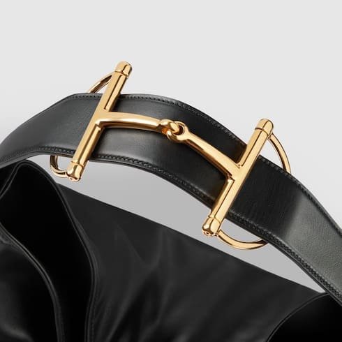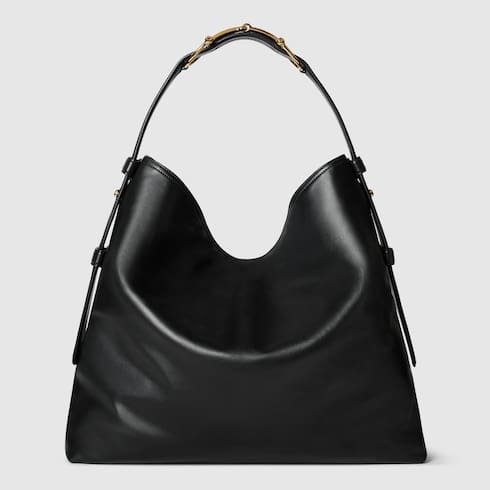 Description In the Fall Winter 2025 collection, crafted from soft smooth leather, the Gucci Beatrix handbag features a relaxed silhouette elevated by the signature Horsebit detail on the shoulder strap. The gold-toned hardware enhances its refined feel, while a zip pocket inside keeps essentials secure. Black soft smooth leather Gold-toned hardware Black cotton linen lining Horsebit detail on the shoulder strap Inside: zip pocket Adjustable shoulder strap: 10.2″ – 13″ drop; 37″ length W15.7″ x H14.2″ x D4.7″ Weight: approximately 2.2lbs Made in Italy