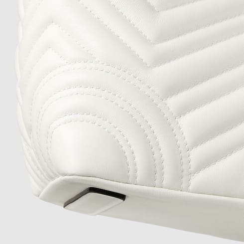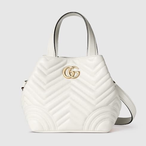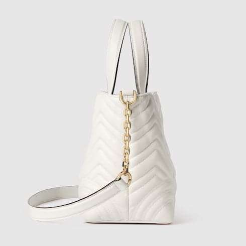 Description Gucci Betty adds a touch of spontaneity to refined design, which can change from a structured tote to soft-shaped bucket. The style is completed with top handles and a chain shoulder strap, offering versatile styling options. Product Details White matelassé chevron lambskin leather Light gold-toned hardware Gucci Rosso Ancora red viscose lining Double G Inside: open pocket Handle with 4.3″ drop Shoulder strap with 20.9″ drop (17.7″ when bag is closed) W7″ (11.4″) x H7″ x D5″ Weight: approximately 0.88lbs Fits iPhone Pro Max/Plus, Airpods, long wallet, and lipstick