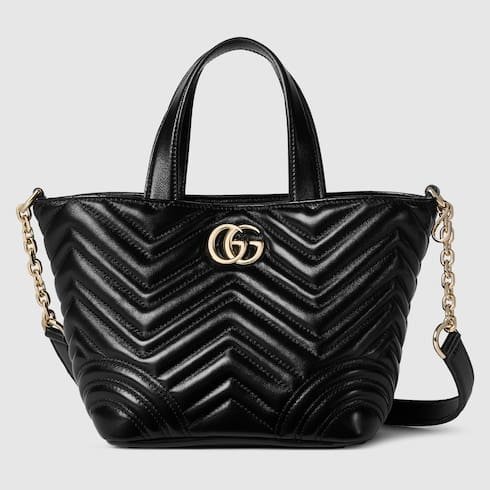 Description Gucci Betty adds a touch of spontaneity to refined design, which can change from a structured tote to soft-shaped bucket. The style is completed with top handles and a chain shoulder strap, offering versatile styling options. Product Details Black matelassé chevron lambskin leather Light gold-toned hardware Gucci Rosso Ancora red viscose lining Double G Inside: open pocket Handle with 11cm drop Shoulder strap with 53cm drop (45cm when bag is closed) W18cm (29cm) x H18cm x D12.5cm Weight: approximately 0.4kg Fits iPhone Pro Max/Plus, Airpods, long wallet, and lipstick