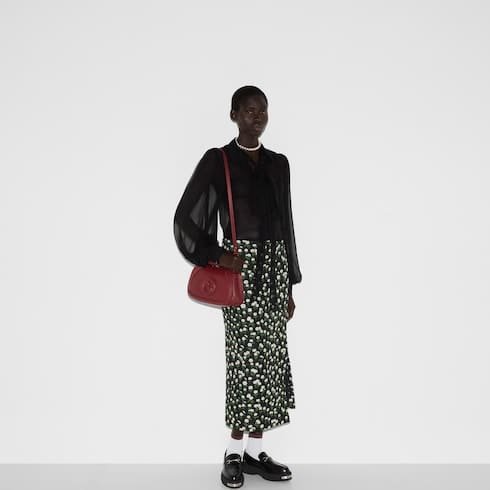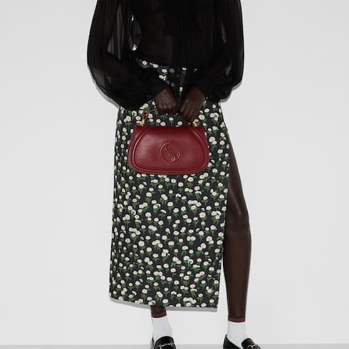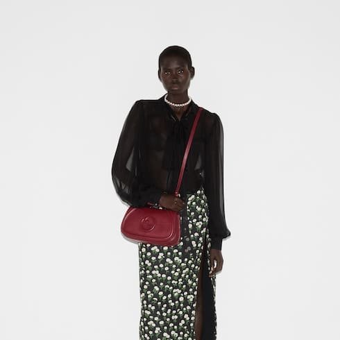 Description The new Gucci Blondie bag, whose distinctive logo first appeared in the House’s collections in the early 1970s, weaves together past and present in a fusion of nostalgia and modernity. This medium top handle bag with a detachable and adjustable leather shoulder strap is crafted from Gucci Rosso Ancora red smooth leather. Product Details Gucci Rosso Ancora red smooth leather Gucci Rosso Ancora red leather trim Brown cotton linen lining Round Interlocking G Inside: 1 zip pocket Outside: 1 open pocket on the back Top handle with 2.2″ drop Detachable and adjustable shoulder strap with 18.5″ – 20.9″ drop; length: 39.3″ – 44.1″ Magnetic closure 10.4″W x 6.5″H x 3.3″D Weight: 1.3lbs, approximately Made in Italy The model is 5’8″ tall Fits iPhone Pro Max/Plus, Airpods, long wallet, and lipstick