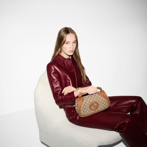 Description The new Gucci Blondie bag, whose distinctive logo first appeared in the House’s collections in the early 1970s, weaves together past and present in a fusion of nostalgia and modernity. Product Details Beige and dark brown GG canvas Brown leather trim Gold-toned hardware Brown cotton linen lining Round Interlocking G Inside: 1 zip pocket Outside: 1 open pocket on the back Top handle with 2.2″ drop Detachable and adjustable shoulder strap with 18.5″ – 20.9″ drop; length: 39.3″ – 44.1″ Magnetic closure 10.4″W x 6.5″H x 3.3″D Weight: 1.3lbs, approximately Made in Italy The model is 5’9″ tall Fits iPhone Pro Max/Plus, Airpods, long wallet, and lipstick
