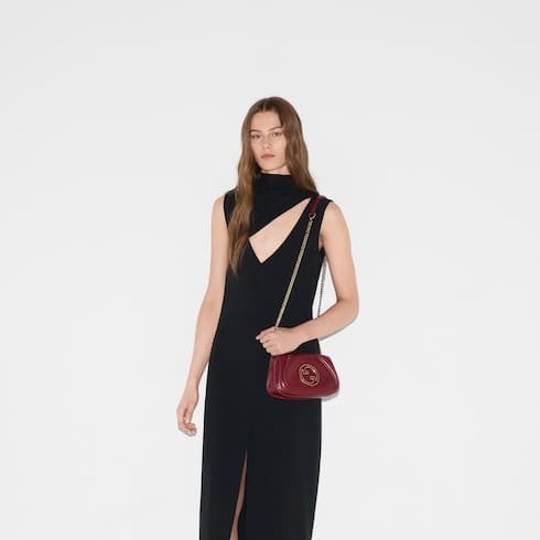 Description The new Gucci Blondie bag, whose distinctive logo first appeared in the House’s collections in the early 1970s, weaves together past and present in a fusion of nostalgia and modernity. Product Details Gucci Rosso Ancora red leather Gucci Rosso Ancora red leather trim Brown cotton linen lining Enamel Round Interlocking G Inside: 1 open pocket Outside: 1 back open pocket Chain shoulder strap with 51cm drop Magnetic closure Weight: 400g approximately W21.5cm x H11cm x D8cm Made in Italy The model is 179 cm tall Fits iPhone Pro Max/Plus, Airpods, small wallet, and lipstick