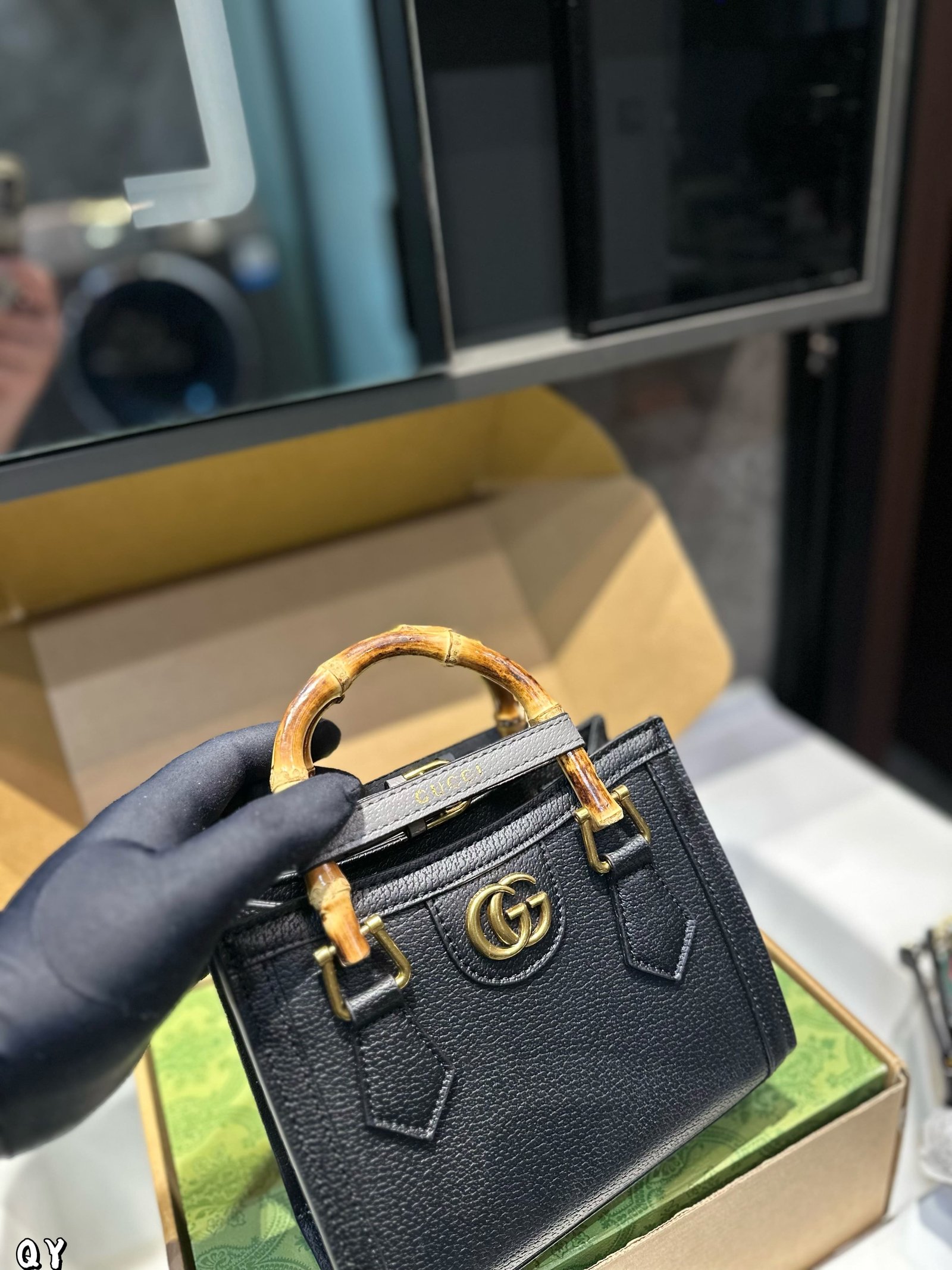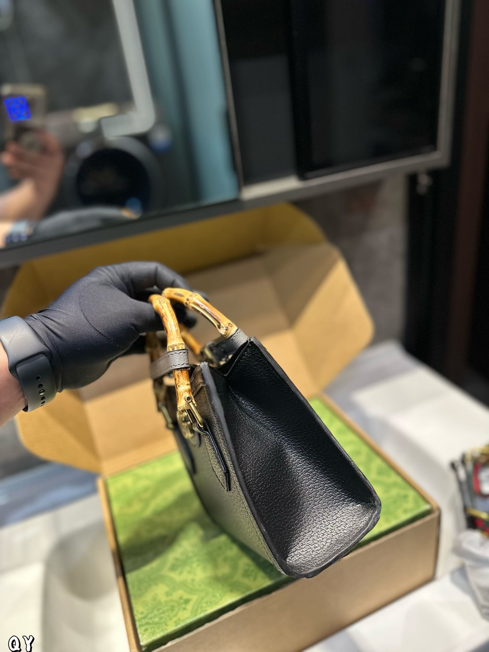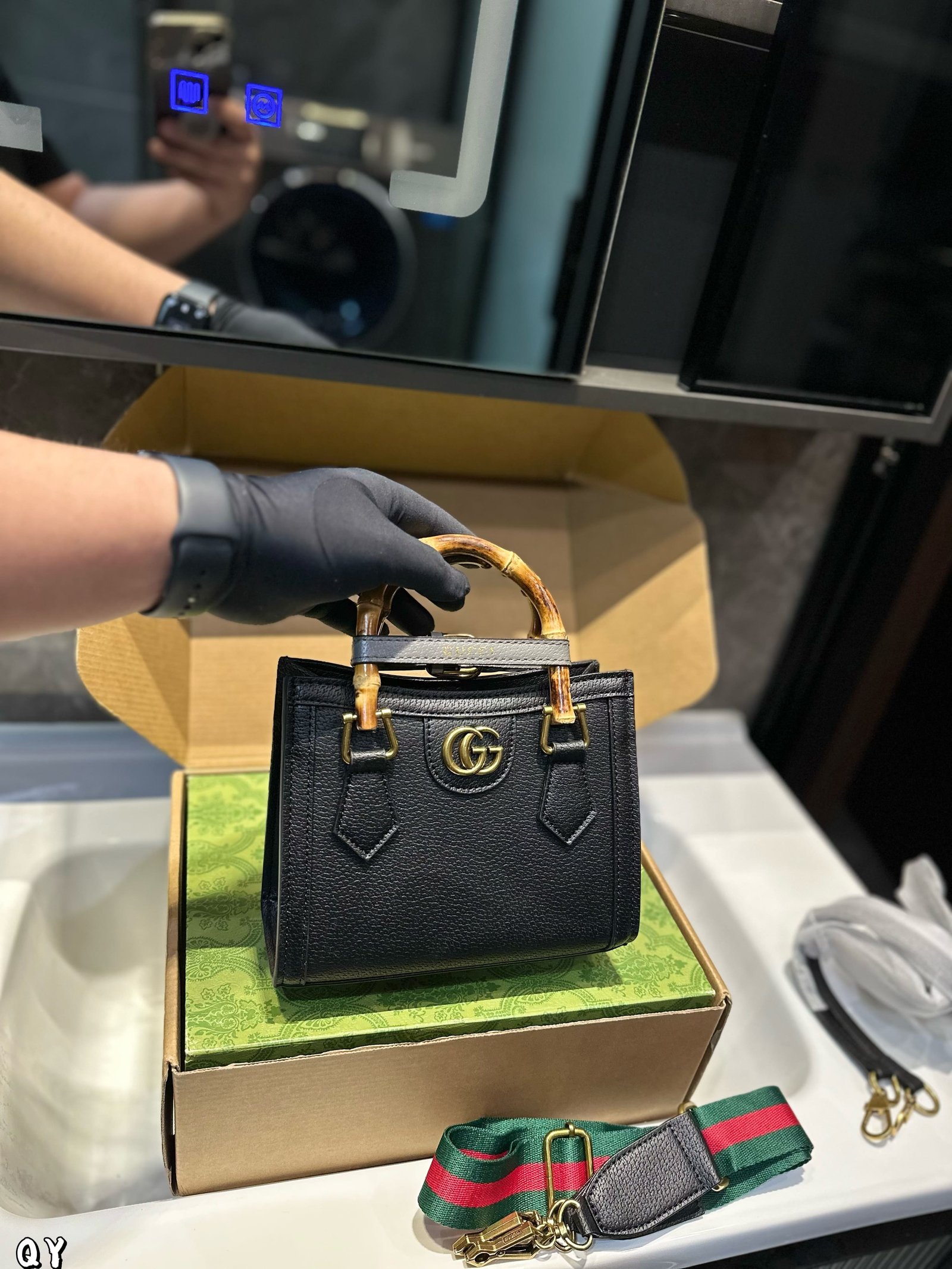 Description An evolution of a bamboo handle tote first introduced in 1991, the Gucci Diana represents the notion of style in constant evolution and is reimagined with removable, neon leather belts—a nod to the functional bands used to keep the handles in shape. Black leather Shiny antique gold-toned hardware This item comes with 2 decorative belt handle shapers as shown in the image Microfiber lining with a suede-like finish Double G Interior open pocket Bamboo handles with 3.1″ drop Web strap drop: 18.1″ – 28.7″ and leather strap drop: 17.3″ – 21.6″ Web strap length: 35.4″ – 55.9″ and leather strap length: 36.6″ – 42.9″ 7.9″W x 6.3″H x 3.9″D Weight: 1lbs approximately Made in Italy The model is 5’7″ tall Fits iPhone Pro Max/Plus, Airpods, small wallet, lipstick, and more