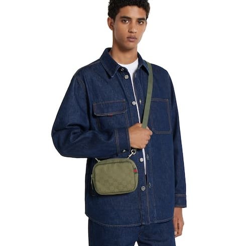 Description Crafted from a GG canvas, this mini bag pays homage to founder Guccio Gucci’s instantly-recognizable monogram. Spotlighting a new forest green shade that lends a modern touch to everyday accessories, the design is complete with a Web detail. Forest green GG canvas Forest green leather trim Green and red Web detail Nylon lining Outside: 1 back pocket, 1 card slot Detachable and adjustable canvas shoulder strap with 21.6″ drop Zip closure 6.9″W x 5.5″H x 1.9″D/17.5 cm x 14.0 cm x 4.8 cm Weight: 348g, approximately Made in Italy Fits iPhone Pro Max/Plus, bi-fold wallet or card case, and Airpods
