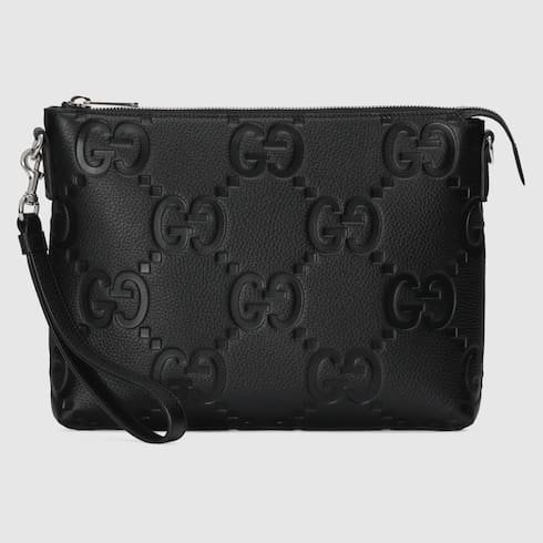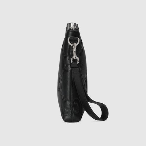 Description The all-black jumbo GG design returns for Pre-Fall 2023 on a selection of leather pieces. A reinterpretation of Guccio Gucci’s initials, the motif is an evergreen of the House that appears prominently in maxi size for an eye-catching logo feel. The signature motif decorates this messenger bag. Black jumbo GG leather Cotton linen lining Inside: 1 zip pocket Shoulder strap with 22.4″ drop Zip closure 12.2″W x 9.6″H x 2″D Weight: 1.63lbs approximately Made in Italy The model is 6’1″ tall Fits iPhone Pro Max/Plus, bi-fold wallet or card case, and Airpods