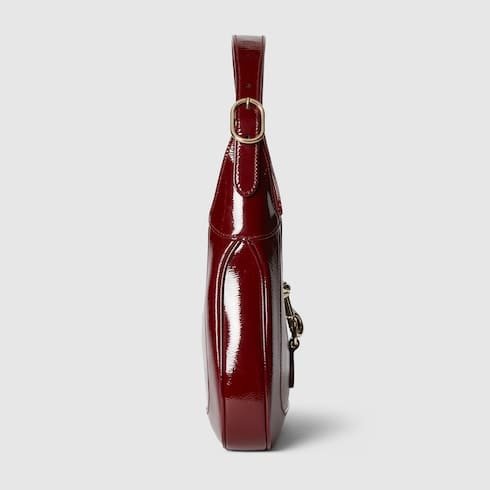 Description The new Gucci Jackie is crafted from fine leather which highlights the craftsmanship, crescent shape, and sleek silhouette of the House’s iconic shoulder bag. Light gold-toned hook closure, leather trim, and an additional strap featuring the green and red Web gives this Gucci Jackie medium shoulder bag in Gucci Rosso Ancora leather, the signature red hue of the House, further styling options. Product Details Rosso Ancora red patent leather Light gold-toned hardware Leather lining Interior: 1 zip pocket with Gucci Crest zip puller 7.1″ handle drop Detachable Web shoulder strap with 20.5″ drop Hook closure 10.8″W x 7.5″H x 1.6″D/27.4×19.1×4.1cm Weight: 0.9lbs, approximately Made in Italy The model is 5’8″ tall Fits iPhone Pro Max/Plus, Airpods, long wallet, and lipstick