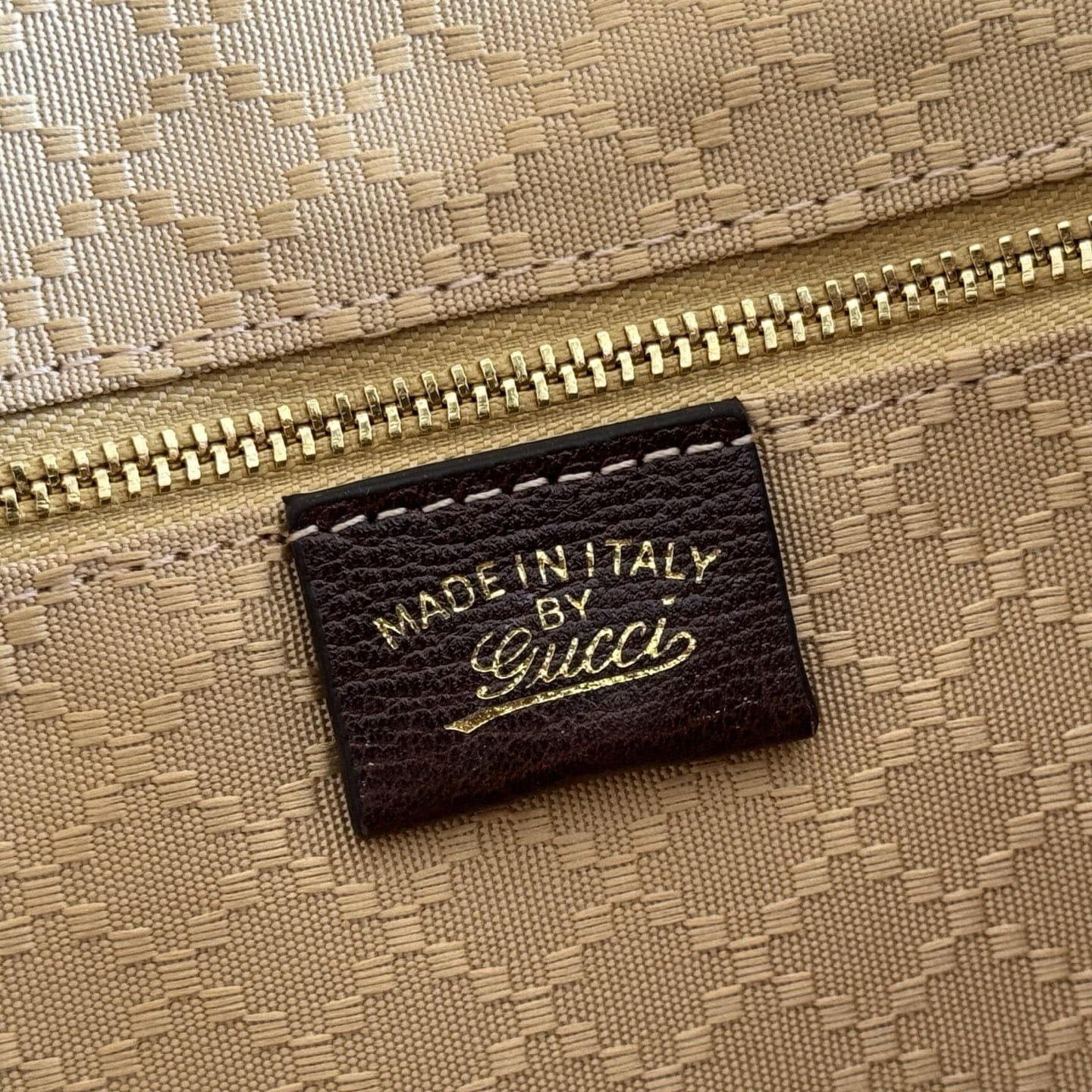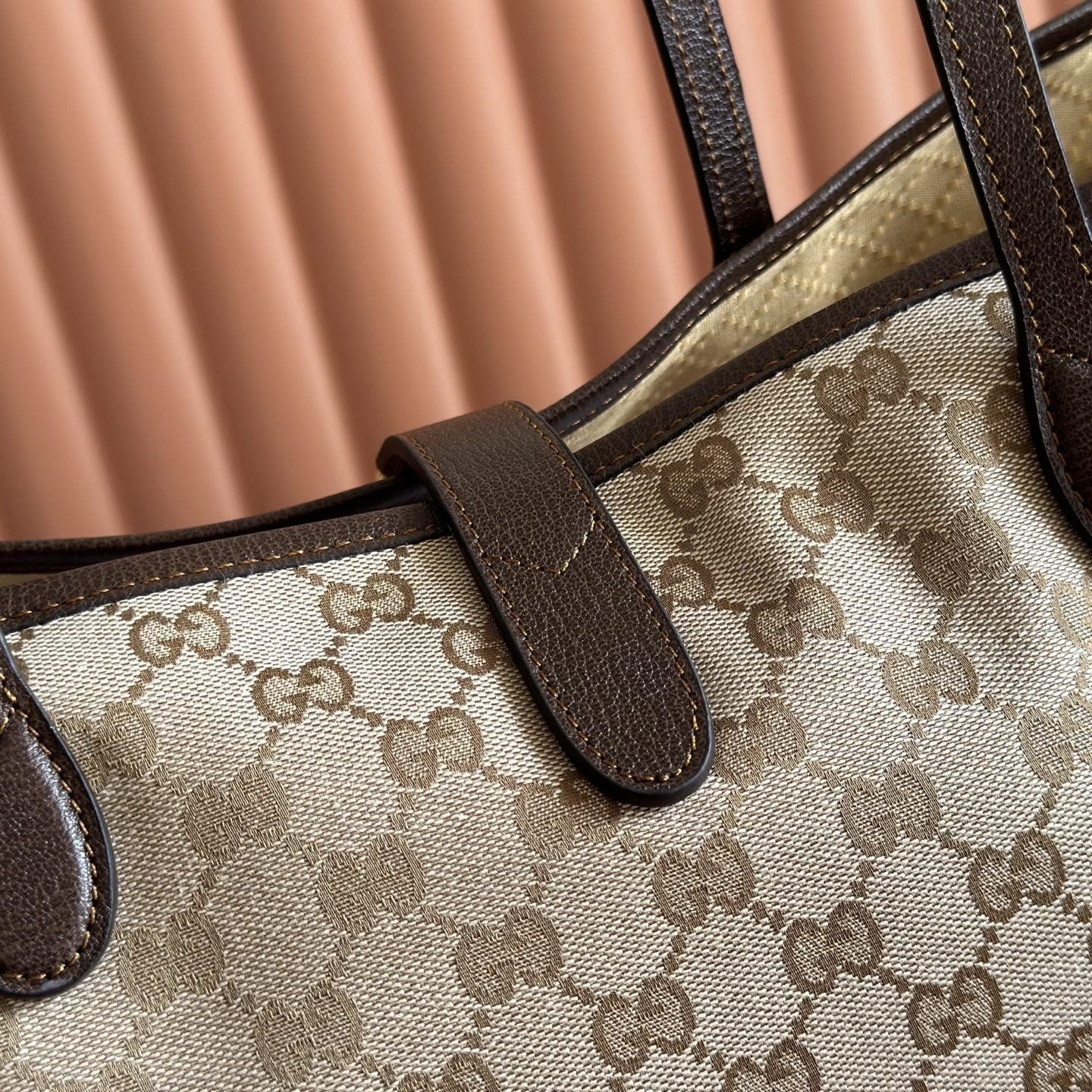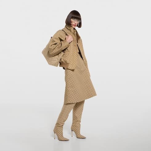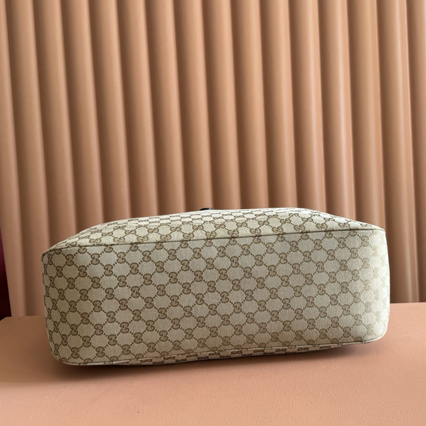 Description Introducing Spring Summer 2026. This new Gucci Jackie tote is crafted from structured yet lightweight GG canvas, and reveals a lining with the Diamante motif taken from the archive. Sand and dark brown GG canvas Dark brown soft leather trim Gold-toned hardware Sand canvas lining with Diamante motif “Made in Italy by Gucci” logo under the piston closure strap Inside: 1 zip pocket 11″ handle drop Piston closure 17.7″W x 11″H x 4.7″D Weight: 1.27lbs, approximately Made in Italy Fits up to a 13″ laptop, iPad, A4 notebook, and small items