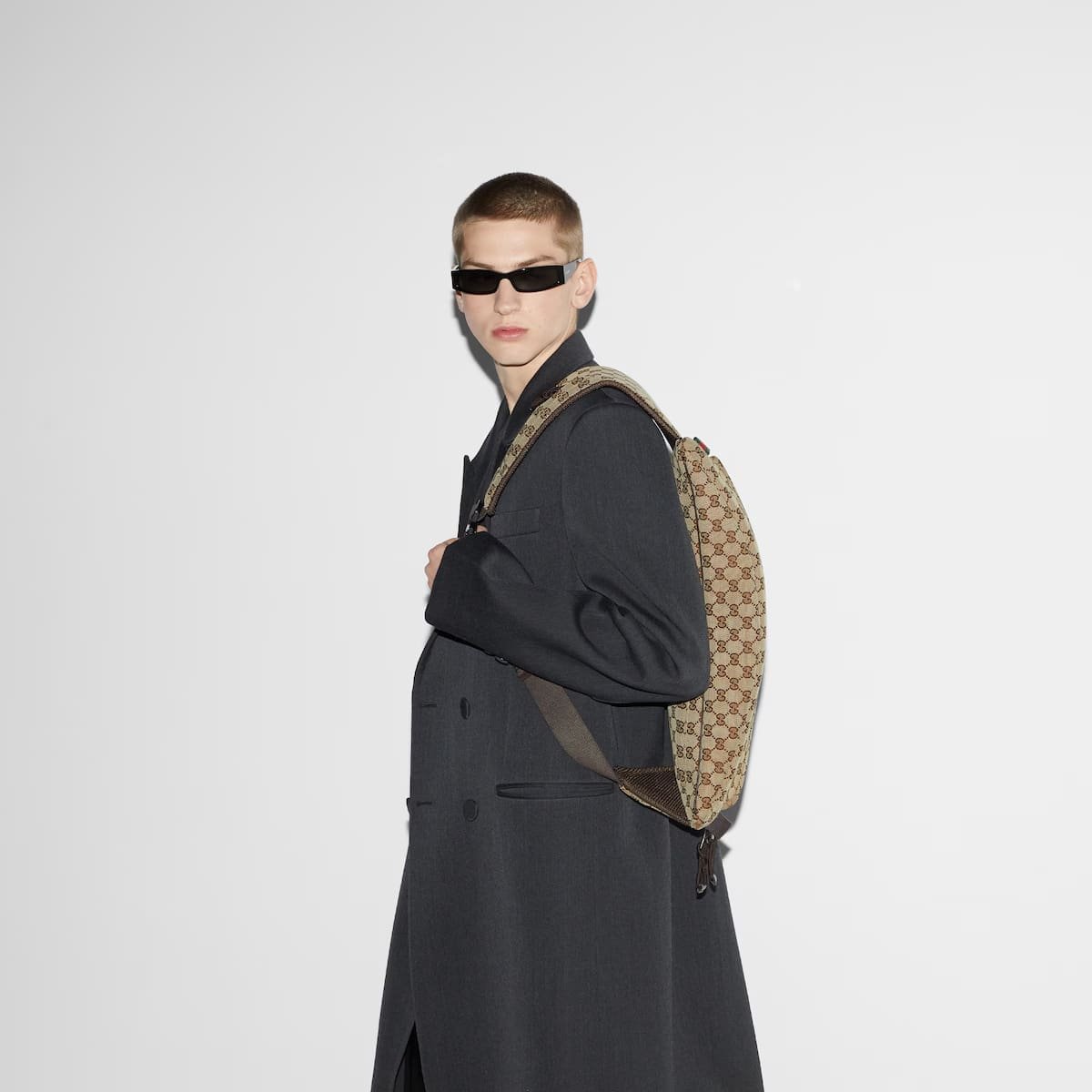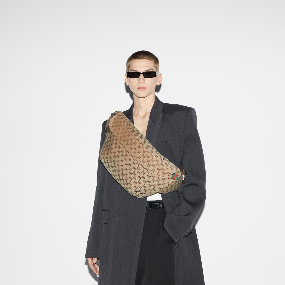 Description Signature pieces appear in the men’s Fall Winter collection with a sporty attitude. Crafted from the Original GG canvas, timeless shapes and color palettes convey a contemporary mood through subtle details, such as the Web and embossed Gucci logo. This belt bag, in beige and ebony canvas, features an inside pocket and functional outside pockets. Beige and ebony Original GG canvas Brown trim Nylon lining Gucci logo in relief, crafted with a high frequency embossing technique Web detail Inside: 1 zip pocket Outside: 1 back zip pocket, 1 zip pocket on the strap Strap: 42″ – 59.4″ Magnetic metal closure and zip closure Large: 20.1″W x 10.2″H x 3.5″D/51 x 26 x 8.5 cm Weight: 1.5lbs approximately Made in Italy The model is 6’1″ tall