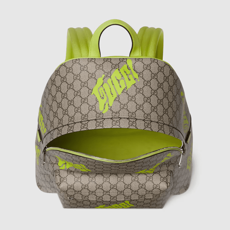Description This backpack is presented as part of the Pre-Fall 2025 collection. Crafted from a black soft leather with a natural shine, it features a Double G and an embossed Gucci logo. A Web detail completes the silhouette, making for a striking everyday accessory. Black soft leather with natural shine Palladium-toned hardware Embossed Gucci logo Dark green cotton linen lining Double G Web detail Padded mesh back Adjustable shoulder strap Inside: 1 zip pocket Outside: 1 zip pocket Handle drop: 8cm Zip closure W36.5cm x H41cm x D18cm Weight: 1.5kg, approximately Made in Italy Fits a laptop, iPad, A4 notebook, iPhone Plus & other small items