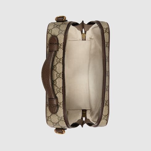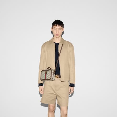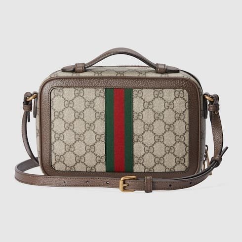 Description The Ophidia line continues to be one of Gucci signature handbags. New silhouettes are introduced each season, providing versatile travel accessories to suit any destination. The Double G and Web stripe remain integral to the design, presented atop this crossbody bag alongside the signature GG Supreme canvas in beige and ebony. Beige and ebony GG Supeme canvas Brown leather trim Gold-toned hardware Green and red Web stripe Cotton linen lining Double G Inside: 1 open pocket Top handle with 3cm drop Adjustable shoulder strap with 54cm drop Zip closure W24cm x H16cm x D7cm Made in Italy The model is 182cm tall Fits iPhone Pro Max/Plus, bi-fold wallet or card case, and Airpods Weight: 0.518 kg approximately