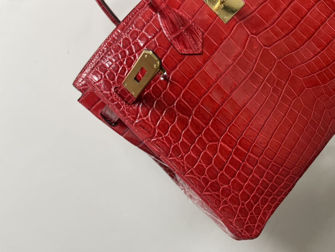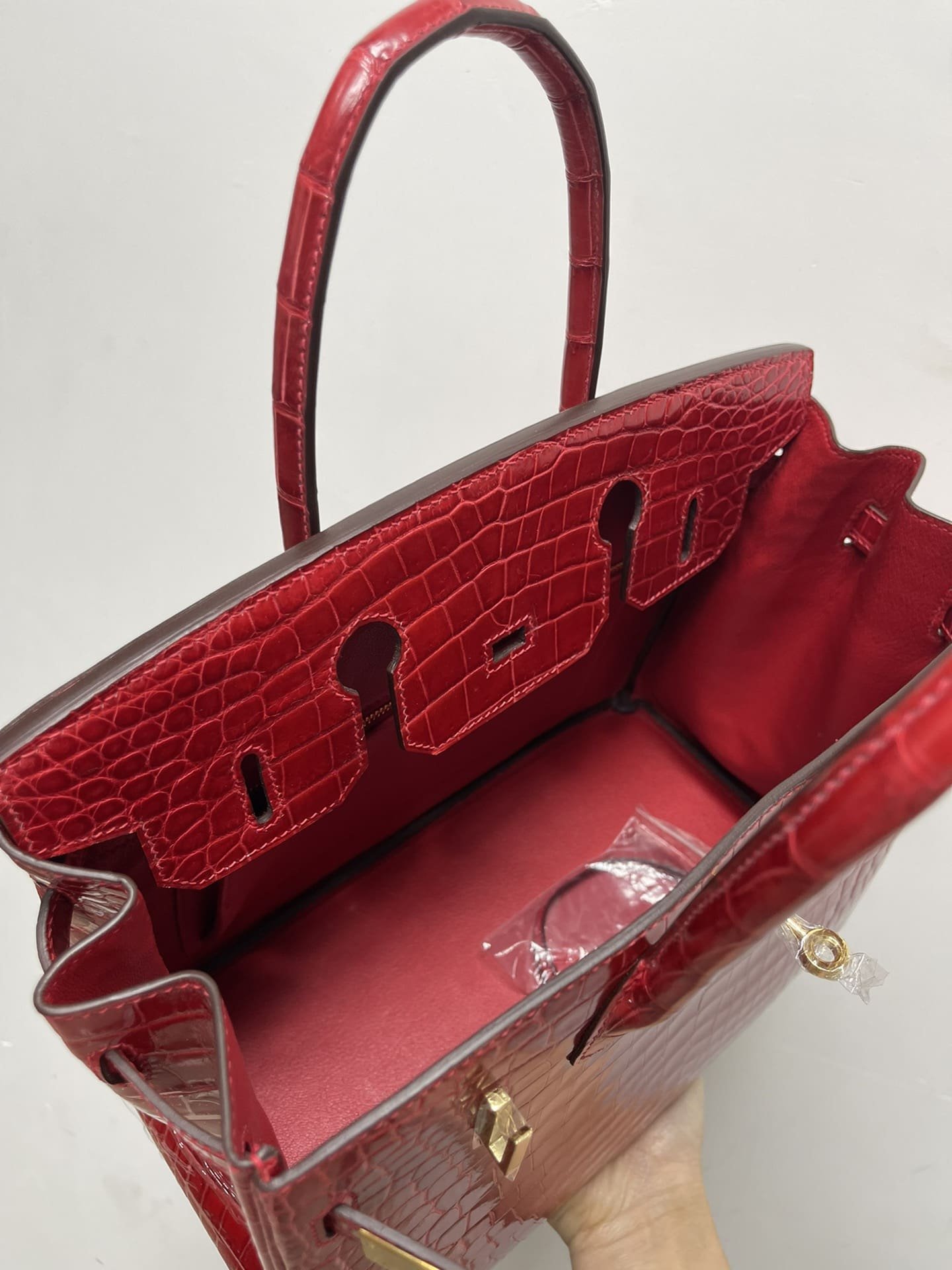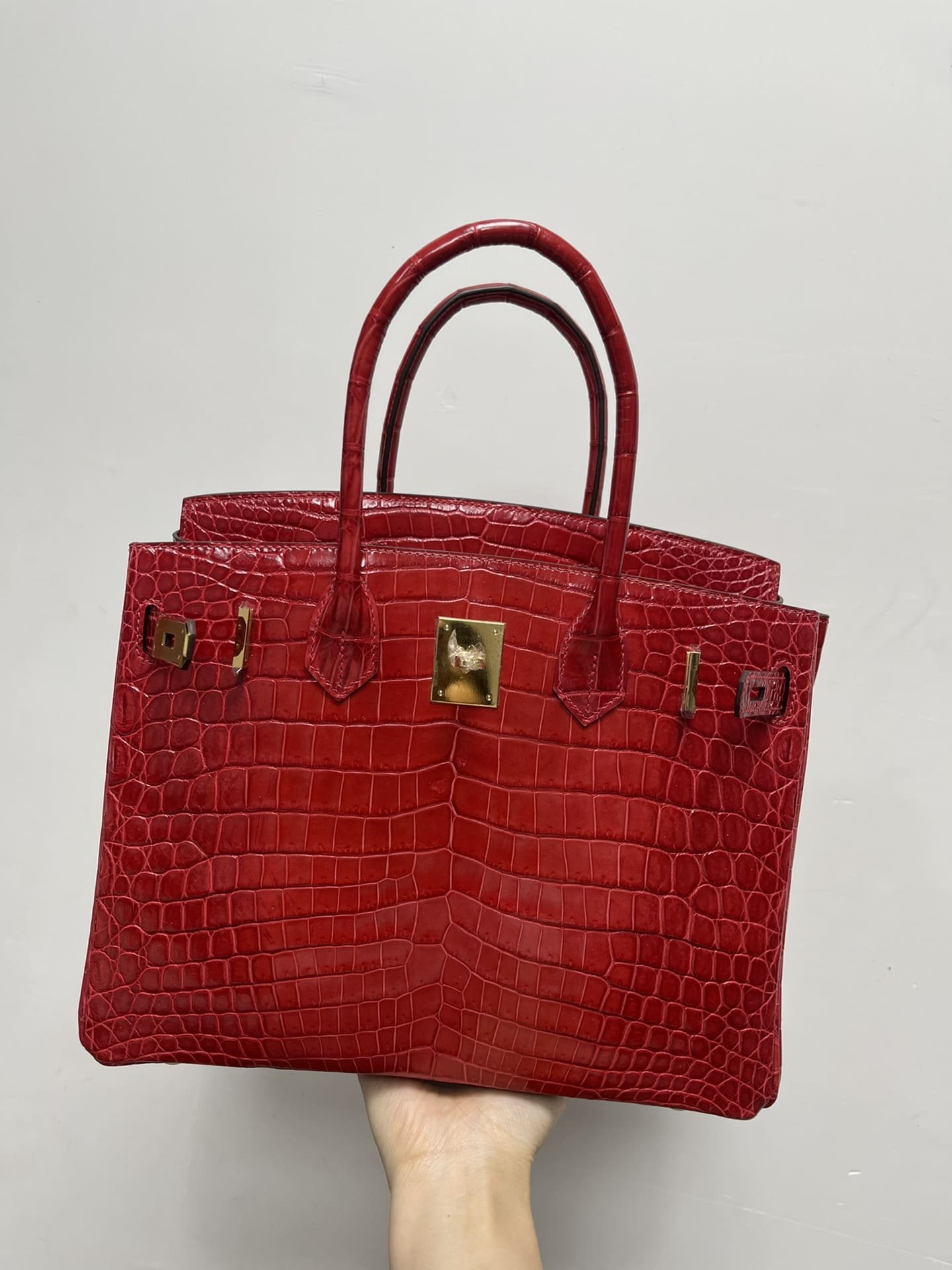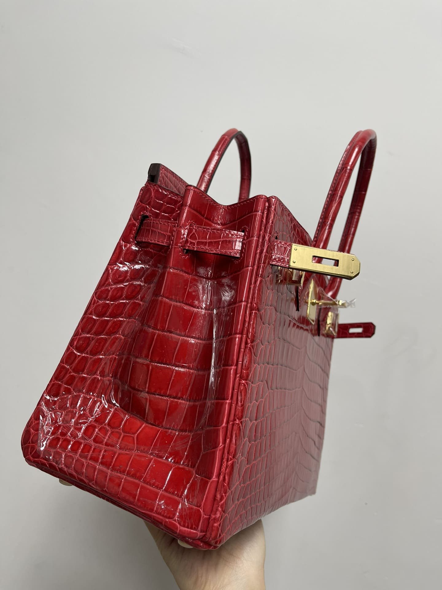 Description Brand Hermès Style Birkin Size 30cm Color Braise Material Shiny Niloticus Crocodile Hardware Gold Hardware (GHW) Dimensions 11.75″ W x 9.5″ H x 6″ D Handle Drop 5″