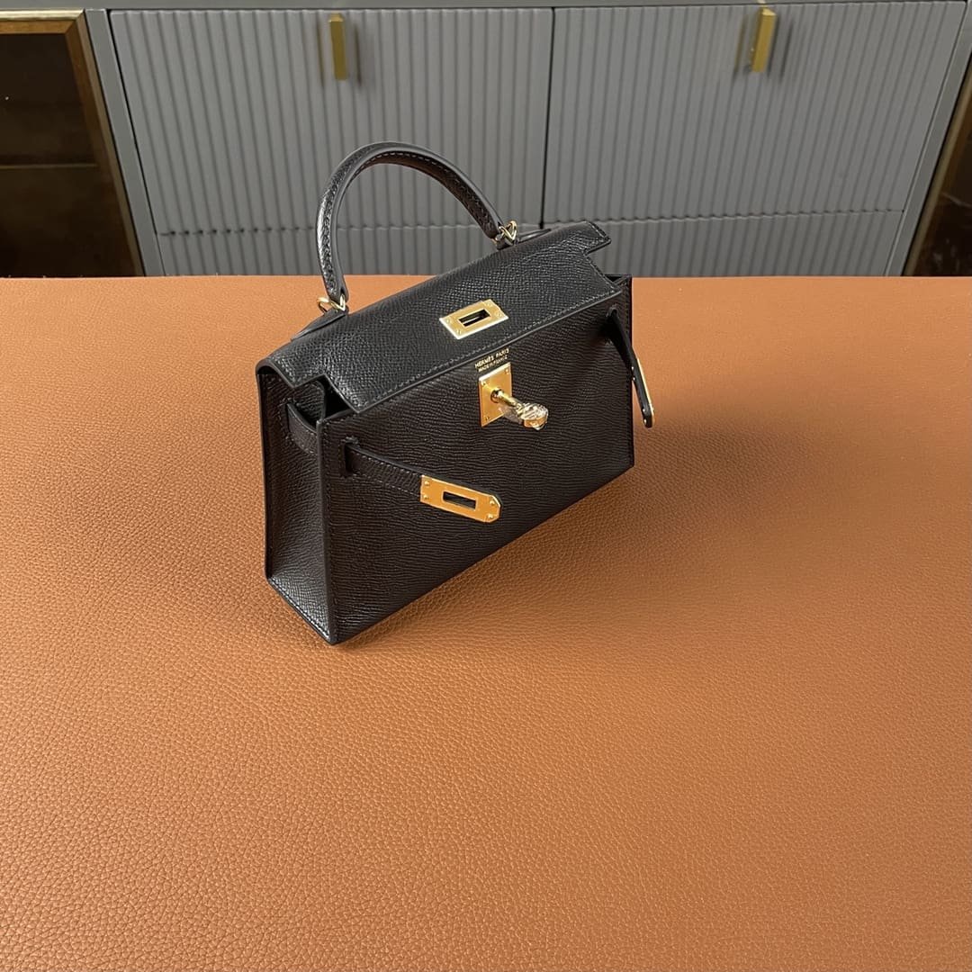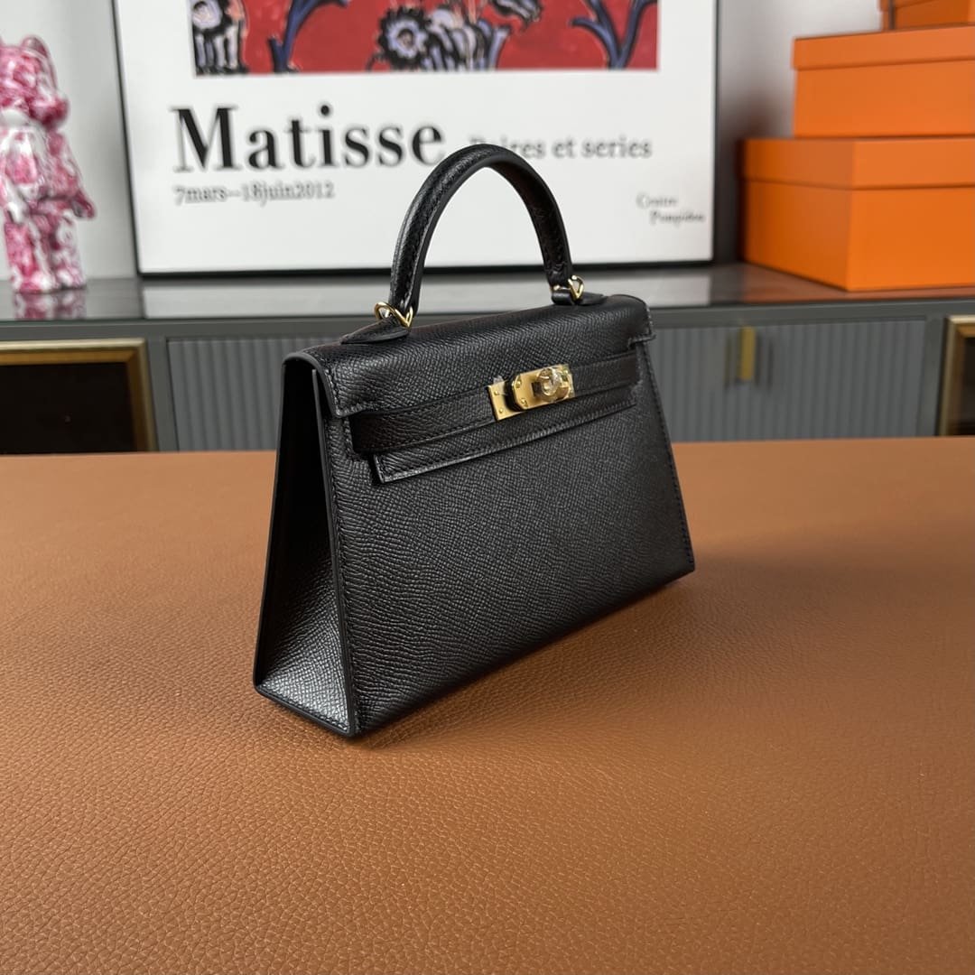 Description This Sellier Kelly mini is a timeless piece crafted from luxurious Black epsom leather and adorned with gold hardware. Its tonal stitching, two straps with front toggle closure, single rolled handle, and removable shoulder strap offer versatile carrying options. The interior is lined with soft Black lambskin leather and features a convenient open pocket. Size: 7.5″ width x 4.5″ height x 2.2″ depth; 2.5″ handle drop (18″ shoulder strap drop) 20 x 11 x 5.5 cm