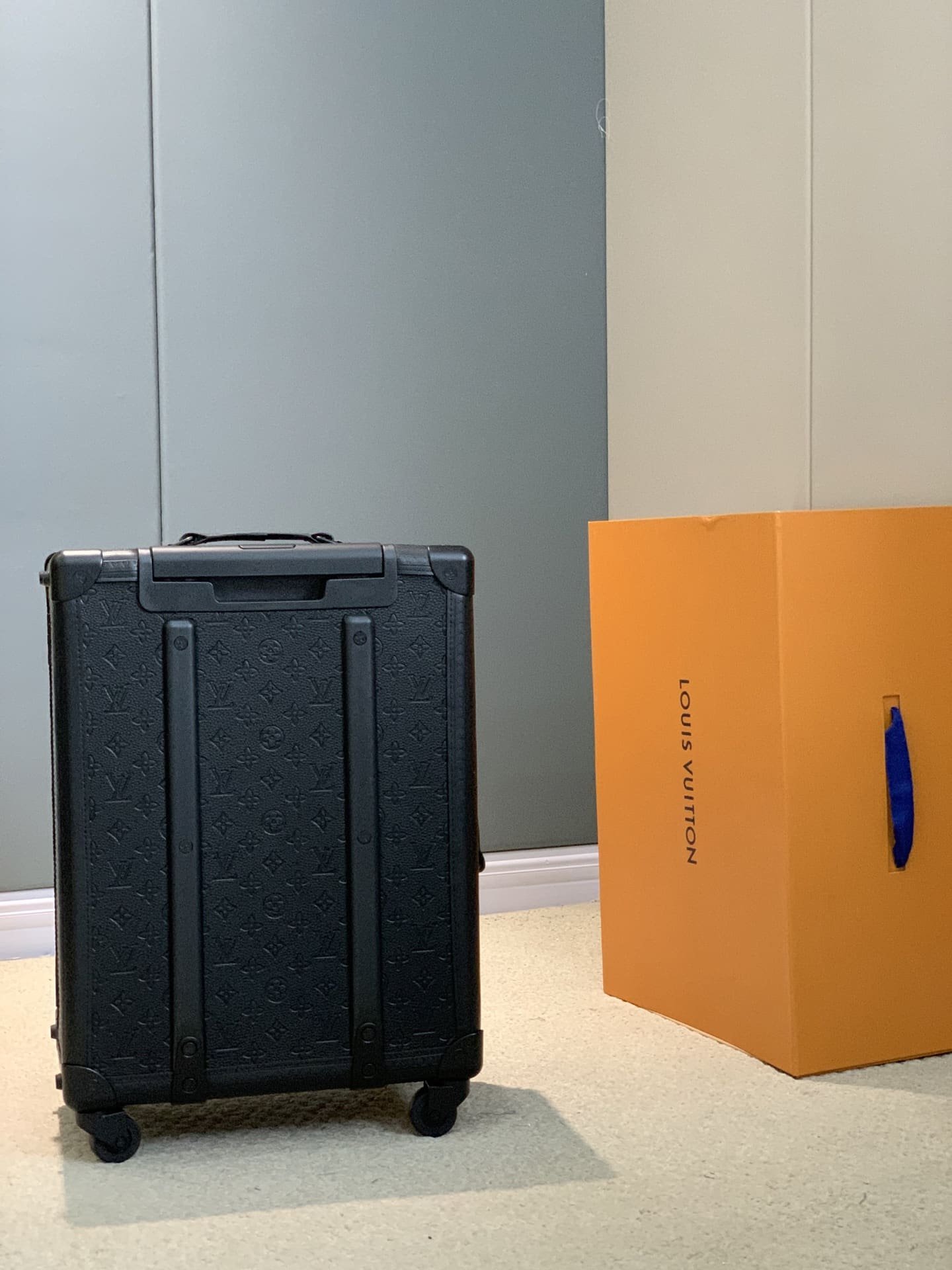 Direct descendant of the House’s iconic travel trunks, the Rolling Trunk is made from Taurillon cowhide leather, embossed with the Monogram pattern. This carry-on bag features a totally flat main compartment, thanks to its extra-slim trolley system. The interior has elastic straps, to keep things organized, and a removable divider with zipped pocket.