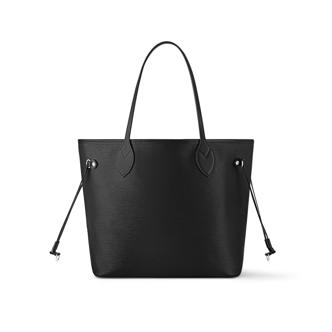 Description Ideal for city commutes and beyond, the iconic Neverfull MM tote unites timeless design with heritage details. This edition is crafted from signature Epi leather and has adjustable side laces to cinch the silhouette, which is capacious enough to store a 13” laptop. The removable zipped pouch can be used as a clutch or an extra pocket for valuables. 31 x 28 x 14 cm (length x height x width ) Black Epi grained leather Cowhide-leather trim Microfiber lining Silver-toned hardware 1 hook closure 1 inside removable zipped pouch 4 side laces Fits: smartphone, keys, Zippy wallet and 13-inch laptop Handle : Double