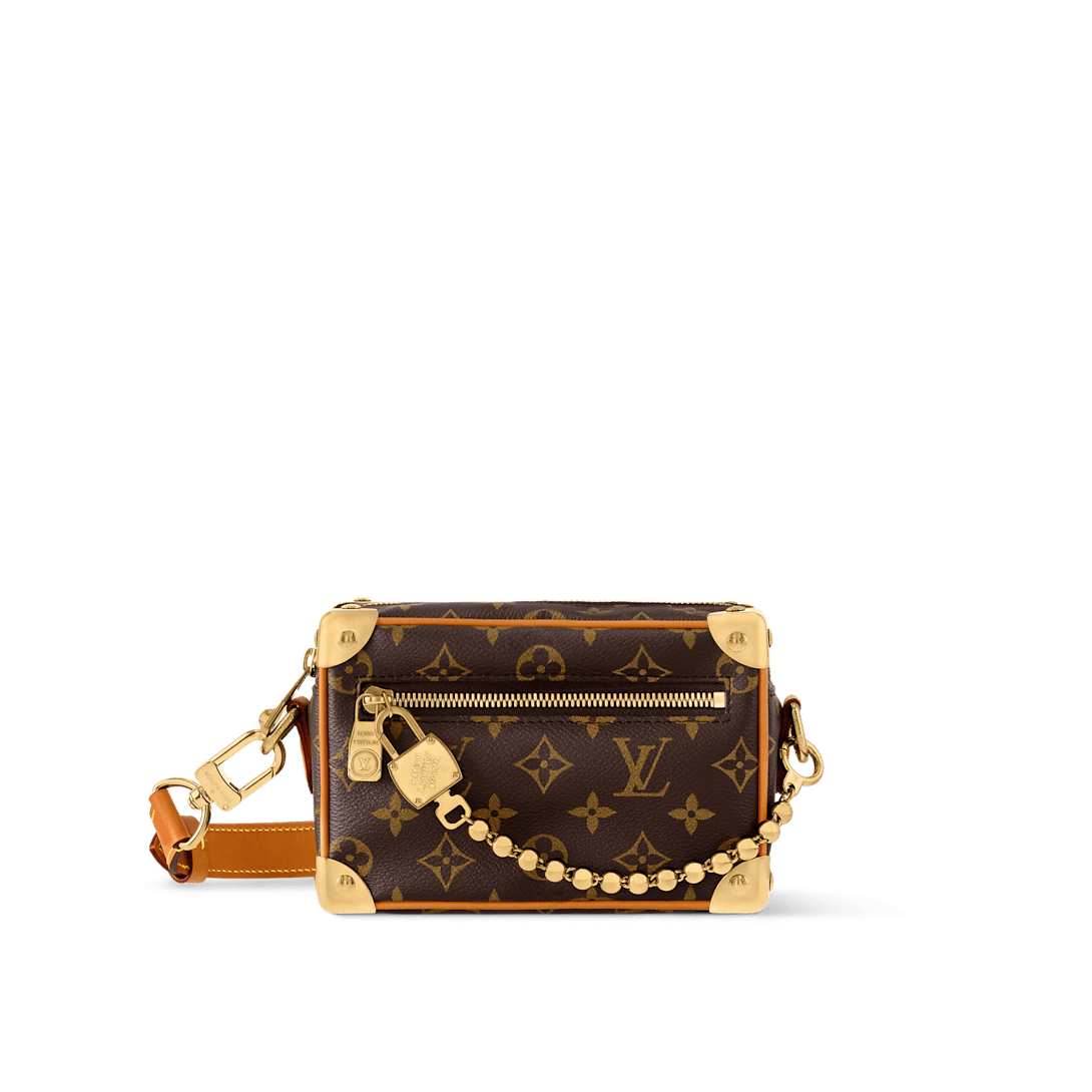 Description The Mini Soft Trunk is crafted from Monogram coated canvas with natural cowhide-leather trim. It features a golden ball chain and a new decorative padlock engraved with the “Louis Vuitton Marque Déposée” signature. This lock is removable, allowing the bag to be carried with or without it, showcasing the metallic-pearl zip-pull. 18.5 x 13 x 8 cm (Length x Height x Width) Monogram coated canvas Aged natural cowhide-leather trim Textile lining Gold-toned hardware Outside zipped pocket Inside flat pocket Trunk-inspired reinforced corners Signature lock with ball chain Strap: Not removable, adjustable Strap Drop: 42.0 cm Strap Drop Max.: 58.0 cm Chain: Not removable