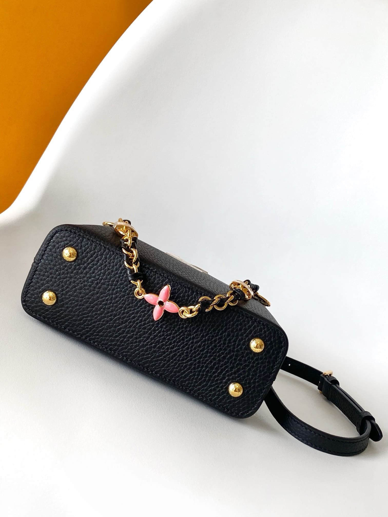 Be the first to review “Louis Vuitton Taurillon Enamel Flower Padlock Chain Capucines BB”