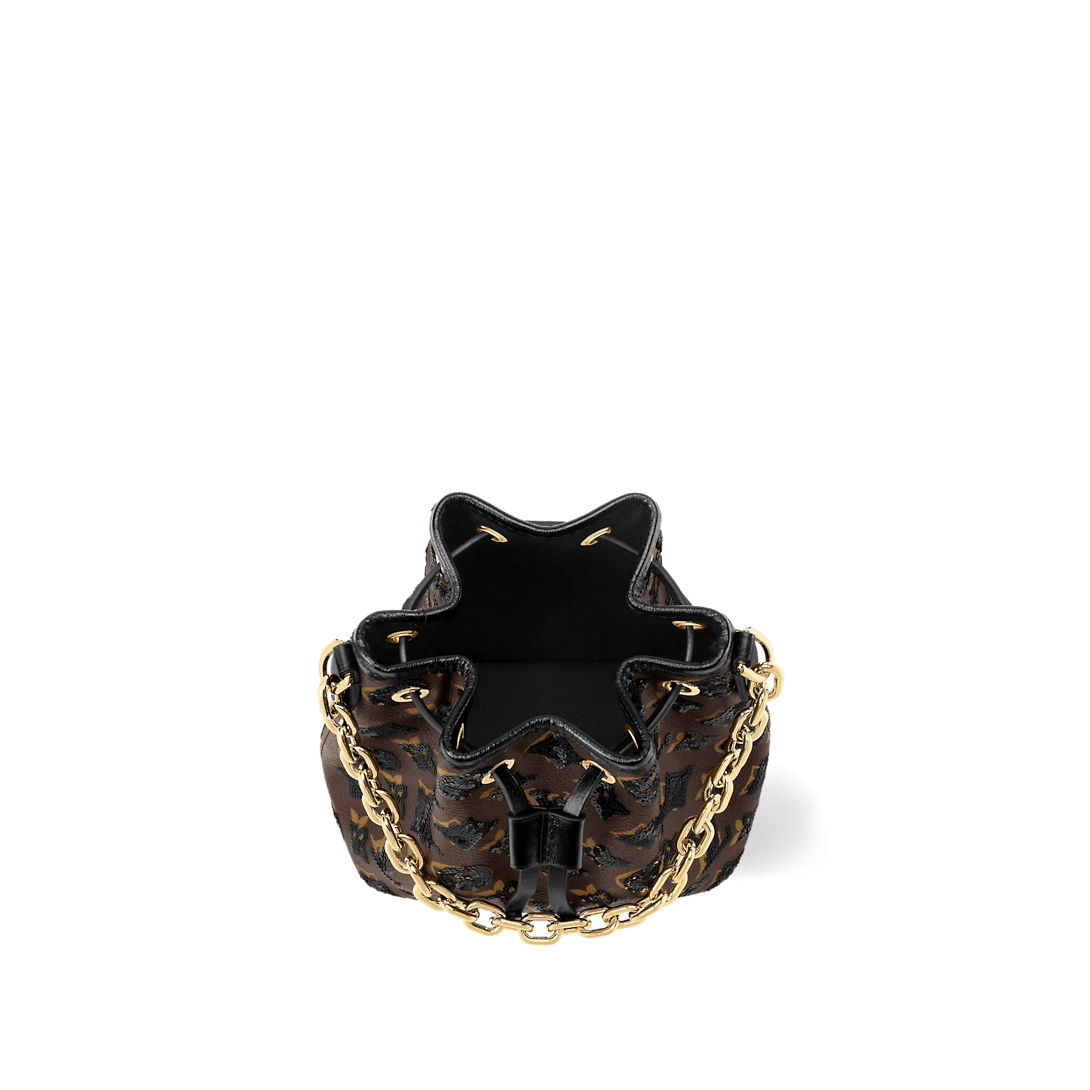 Description This Noé BB handbag is from the LV Ski collection. The canvas body is adorned with sparkling Monogram sequins, its lustrous appearance suitable for both country and city evenings. The dazzling chunky chain reinterprets the original 1932 design, and its perfect size makes it easy to carry essentials such as your favorite lipstick. 17.5 x 13 x 22 cm Monogram coated canvas/cowhide (height x width x length) It can hold a 6.7-inch smartphone, earphones, a Victorine wallet, keys, and lipstick. Fabric lining metal parts Shoulder strap: Detachable, not adjustable Bag strap half length: 46.0 cm Handle: Single handle