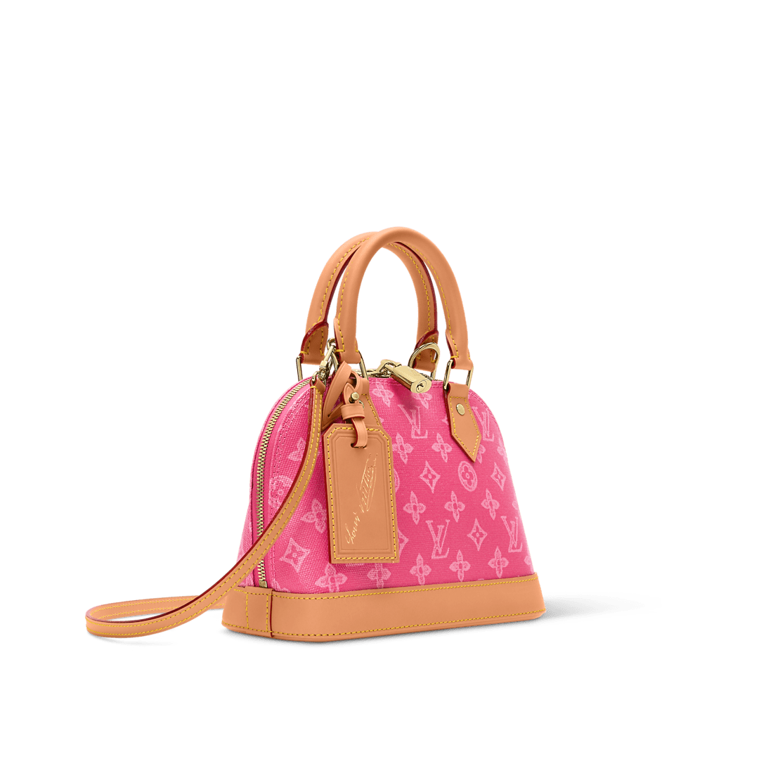 Description Celebrating 130 years of the Louis Vuitton Monogram, this Alma BB presents a vintage-inspired update on the House’s iconic signature. It is made from Monogram Origine canvas, which recalls heritage designs from the archive, and is offered in a Monogram Origine Rose Ruban color palette. Trimmed with smooth cowhide, it is lined with striped fabric and features a signature padlock and an exclusive celebratory address tag. 23.5 x 17.5 x 11.5 cm (Length x Height x Width) Monogram Origine Rose Ruban Coated canvas Cowhide-leather trim Striped textile lining Gold-toned hardware Double zipper and padlock closure 1 removable special anniversary address tag 1 inside flat pocket 1 inside celebratory leather label 4 protective metal base feet Fits: 6.7-inch smartphone, earphones, Zippy wallet, keys Strap: Removable, adjustable Strap Drop: 50.0 cm Strap drop max: 62.0 cm Handle: Single x2