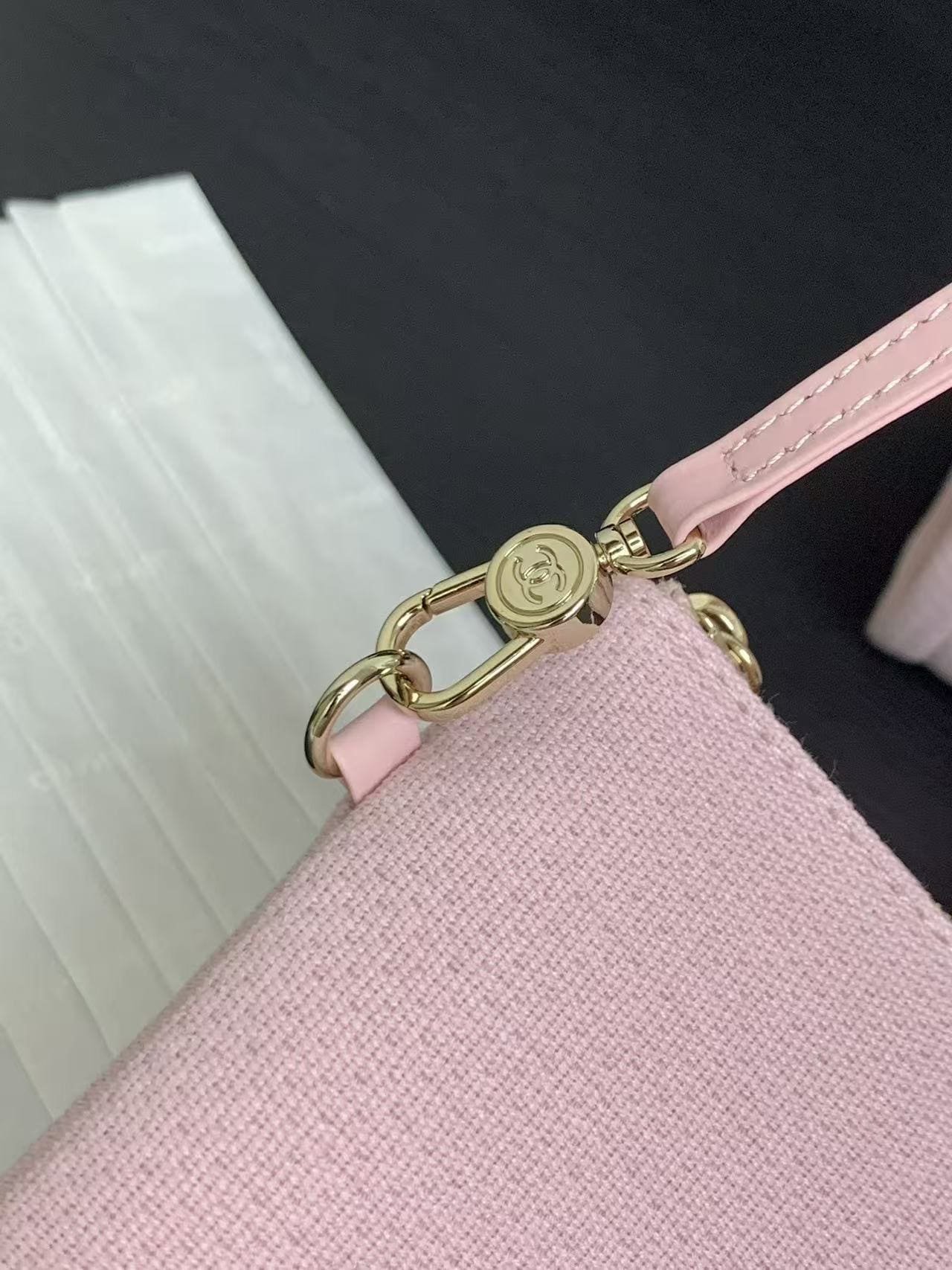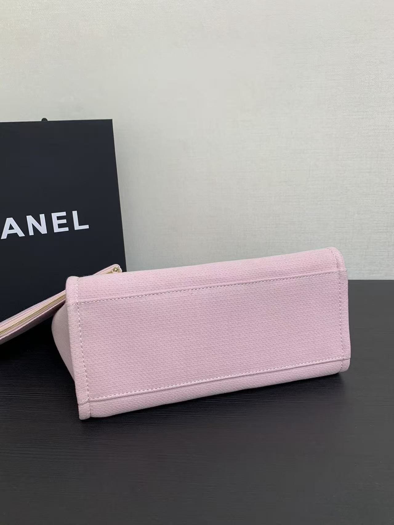 Description This Chanel Deauville tote bag features a canvas body, top handles, a detachable and adjustable chain strap, a push lock closure, and silver-tone hardware. It includes a pouch. This bag can be hand carried or worn on the shoulder. Measurements: 15.5″ L x 7″ W x 12″ H/40x18x30cm Color:Pink The color and material are the same as the official ones.